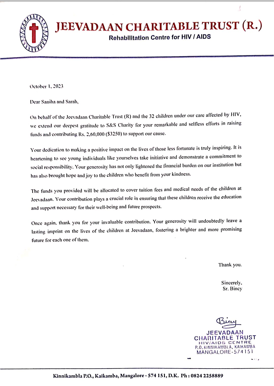 S&S Charity seeks to work with organization to support children in the state of Karnataka suffering from AIDS